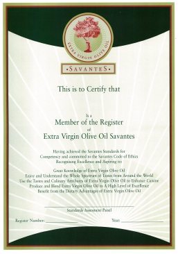 An important element of the programmes is to review and recognise the tasting skill of participants. As the Savantes rubric describing flavour and scoring those undertaking the review is consistent around the world at all events, the recognition of skill gives an international comparison. The two levels of recognition and Certification are Associate Savante and Membership of the Register of Extra Virgin Olive Oil Savantes with full Savante status. Currently there are 55 Associate Savantes and three Savantes – two from Spain and one from the USA. Associate Savantes are domiciled in Spain, USA, Australia, New Zealand, Canada, Ireland, France and Holland.