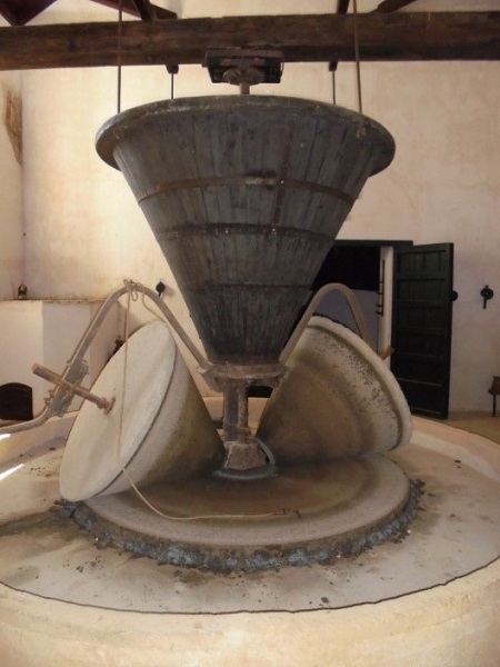 Adjacent are the stables and a building housing a modern centrifugal olive press, the ancient and the modern side by side.