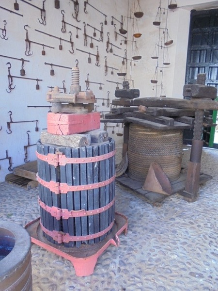 The stately house is the home to the olive oil museum with a massive beam olive oil press and many of